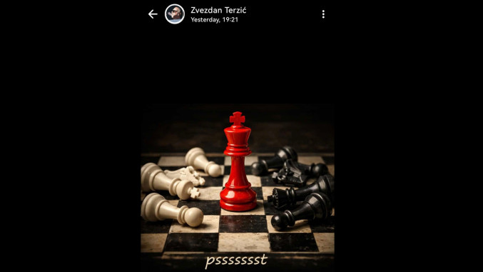 На статусу челног човека црвено-белих нашла се фотографија на којој су црне и беле шаховске фигуре попадале, док једино усправно стоји црвени краљ. Фотографија је имала и опис „пссссссст“.