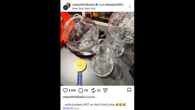 Имала је Микаела Шифрин бројне обавезе према медијима после победе у Светском купу. Са једне телевизије на другу анализирала је још једну успешну сезону, причала о препрекама и изванредним резултатима у најпрестижнијој категорији. Међутим, догодила се несвакидашња ситуација која је изазвала пажњу на друштвеним мрежама.