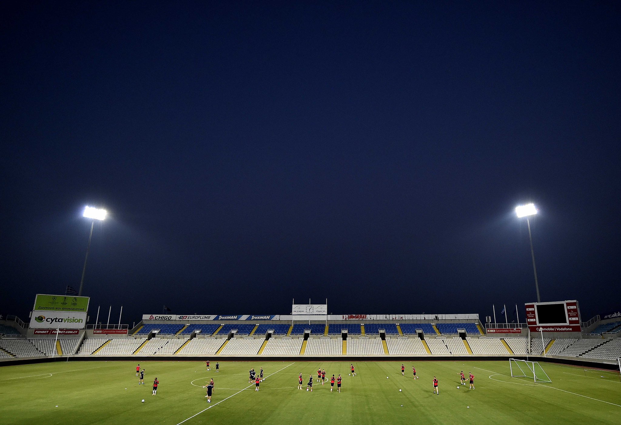 Crveno-beli su noć pre, po dolasku na stadion, imali doček, od navijača APOEL-a. Bakljada, pesma, transparent sa jasnom porukom - Kosovo je Srbija!