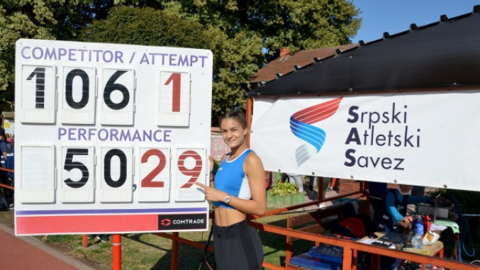Ona je na prvenstvu u višeboju u Sremskoj Mitrovici osvojila 5.029 bodova i oborila rezultat Olivere Stankov od 5.014 bodova iz davne 1985. godine.