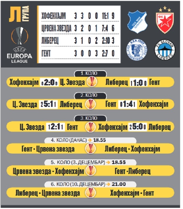 Gent nema ni bod posle tri kola, ali gaji nadu da može u šesnaestinu finala Lige Evrope. Zacrtali su i belgijskom klubu plan da savladaju Crvenu zvezdu i Liberec na domaćem terenu, a zatim potraže prolaz u Nemačkoj. Nije nemoguće, ali jeste teško izvodljivo.