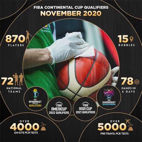 A da nije bilo lako organizovati takmičenja pokazuju brojke. Kvalifikacije za Afrobasket, Eurobasket, Kup Amerike i Kup Azije održavale su se u 15 balona. Učestvovale su 72 reprezentacije sa 870 igrača, odigrano je 78 mečeva za šest dana.