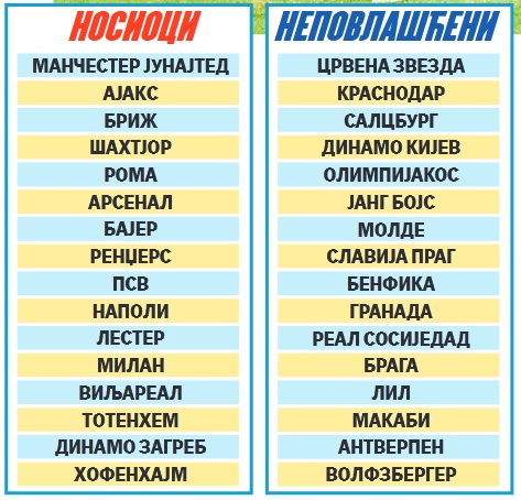 Na listi je 12 starih poznanika, a najviše duela velikan sa Marakane ima u nekadašnjoj Jugoslaviji sa zagrebačkim Dinamom. Na evropskoj sceni žreb ih nije spajao, a postoji mogućnost da se konačno to dogodi u ponedeljak kad će se odrediti parovi prve runde nokaut faze.