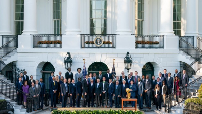 Košarkaši Milvoki Baksa, aktuelni šampioni NBA lige, posetili su Belu kuću gde ih je ugostio američki predsednik Džo Bajden.