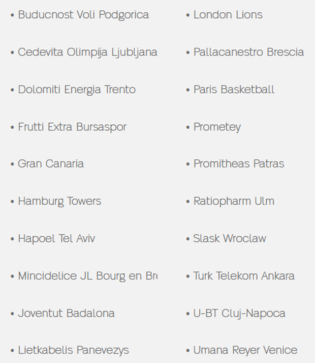 Poznati su svi učesnici košarkaškog Evrokupa, a ABA ligu će u tom takmičenju predstavljati Cedevita Olimpija i podgorička Budućnost, preneo je sajt takmičenja.