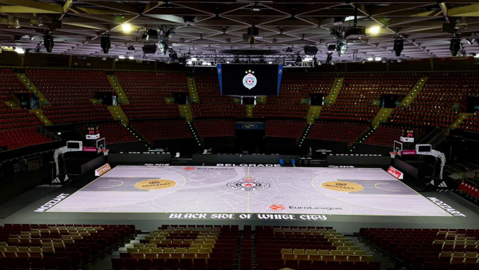 Parket nekadašnjeg „Audi doma” identičan je kao u Bloku 25, sadrži čak i geografsku odrednicu „Beograd” – iako je susret sa Hapoelom u Nemačkoj. Pride, na semaforu je instaliran grb šampiona Srbije, stoga može da se očekuje i da temeljan rad, evidentno, do početka utakmice iznedri i nove motive Partizana u bivšoj kući Bajerna.
