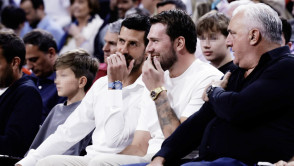 Iz prvog reda meč prate as Lejkersa Luka Dončić (nekada igrač Reala) i najbolji teniser sveta ikada Novak Đoković.