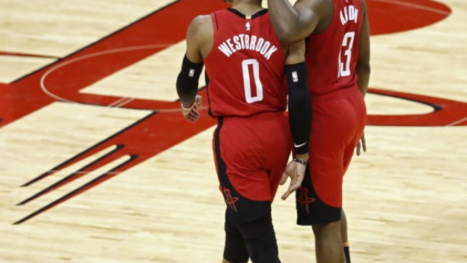 Najpopularnija "Brada" u NBA ligi do prekida sezone prosečno je postizala 34,4 poena, 6,4 asistencije i 7,4 skoka, dok je Vestbruk imao prosek od 27, 5 koševa, 6,3 skoka i osam asistencija.